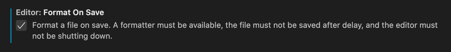 Code Formatter에 대해서 VSCode를 사용한다면 workspace setting의 Format On Save를 체크하면 ctrl + s를 누를 때마다 Code Formatting을 해준다.