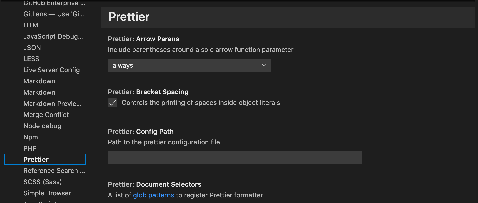 Prettier는 입력 파일 경로에서 자동으로 파서를 유추하므로 이 설정을 변경할 필요가 없다.