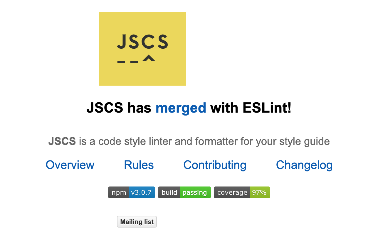 Marat Dulin님이 2014년에 만드신 코드 스타일 Linter이다. Google, Airbnb, jQuery와 같은 다양한 프로젝트/회사/팀의 코드 스타일 프리셋 툴을 가져와 사용하거나 스타일을 커스터마이징을 할 수 있다. JSLint와 JSHint는 Best Practice를 제공하는데 목표가 있는데 비해서, JSCS는 코딩 스타일만 명시해주고, 수정하는 방법은 제공하지 않는다. 2016년에 JSCS 팀은 ESLint 프로젝트에 합류했고, 이후 JSCS 도구의 유지 관리를 중단했다.