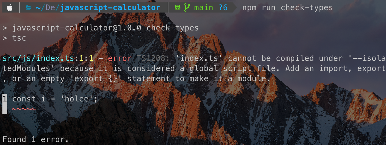src/js/index.ts:1:1 - error TS1208: 'index.ts' cannot be compiled under '--isolatedModules' because it is considered a global script file. Add an import, export, or an empty 'export {}' statement to make it a module.