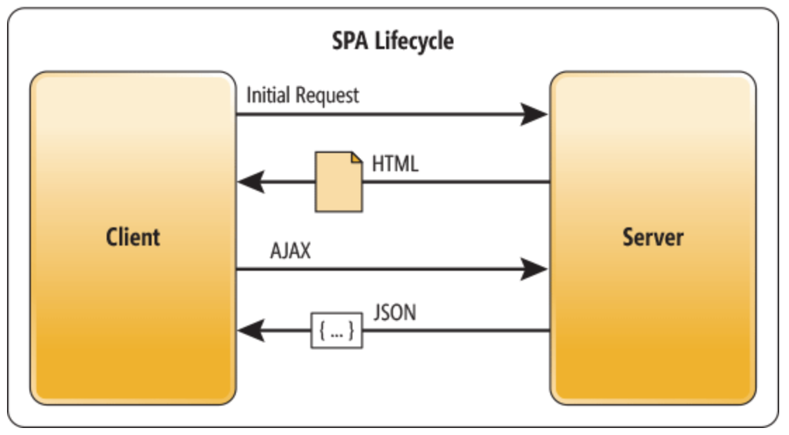 그러나 웹 사이트가 고도화됨에 따라, 한 페이지의 페이지 용량이 커지고, 매번 새로운 페이지를 전달하는게 점점 버거워지게 되었다. 그래서 어떤 웹 사이트의 전체 페이지를 하나의 페이지에 담아 동적으로 화면을 바꿔가며 표현하는 SPA가 등장한다.