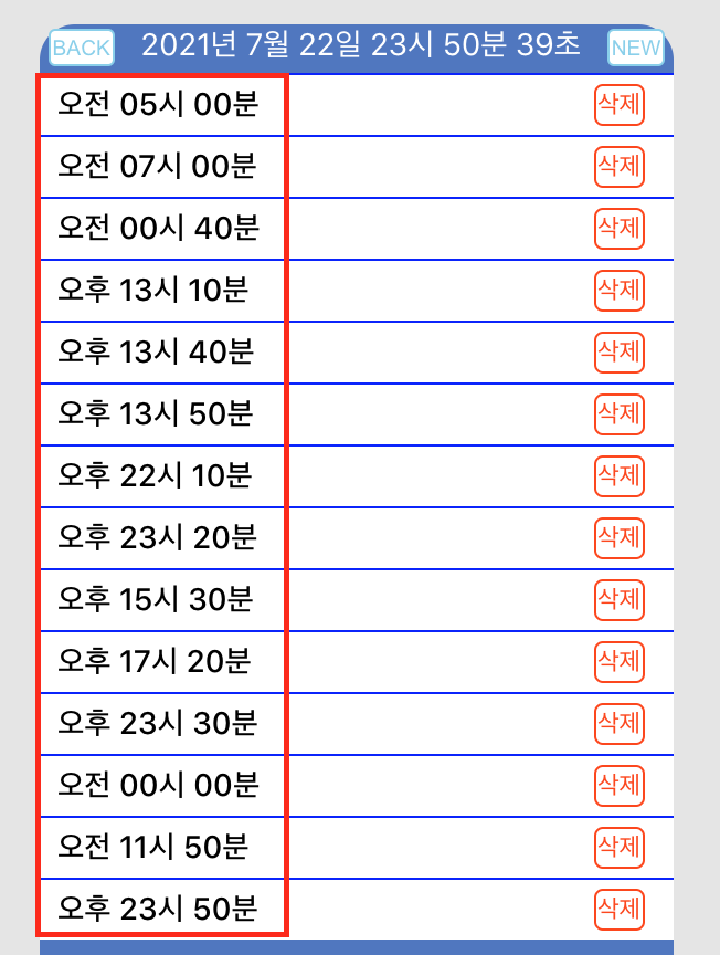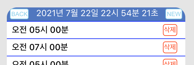 등록된 알림은 해당 시각 0초가 되면 alert로 알림이 울리며, 해당 알림은 알림 리스트에서 삭제된다.