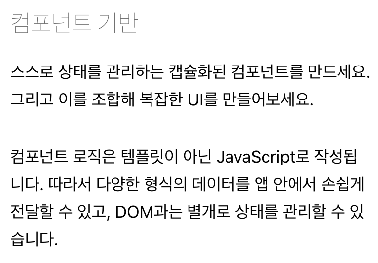 이제 문장의 의미가 이해가된다. React는 DOM관련 javascript 함수들을 컴포넌트로 캡슐화시켰기 때문에 우리가 직접 다루지 않을 수 있고, DOM과는 별개로 상태를 관리하며, 성능을 개선할 수 있다.