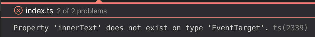 I have an error: Property 'innerText' does not exist on type 'EventTarget'. I'm trying to add event listener and get value from element. Everything works fine but this error shows up in consol...