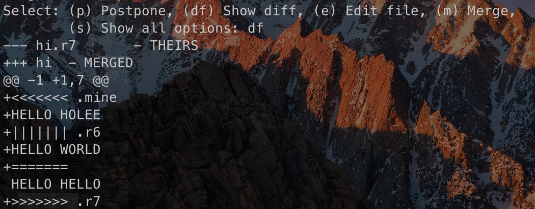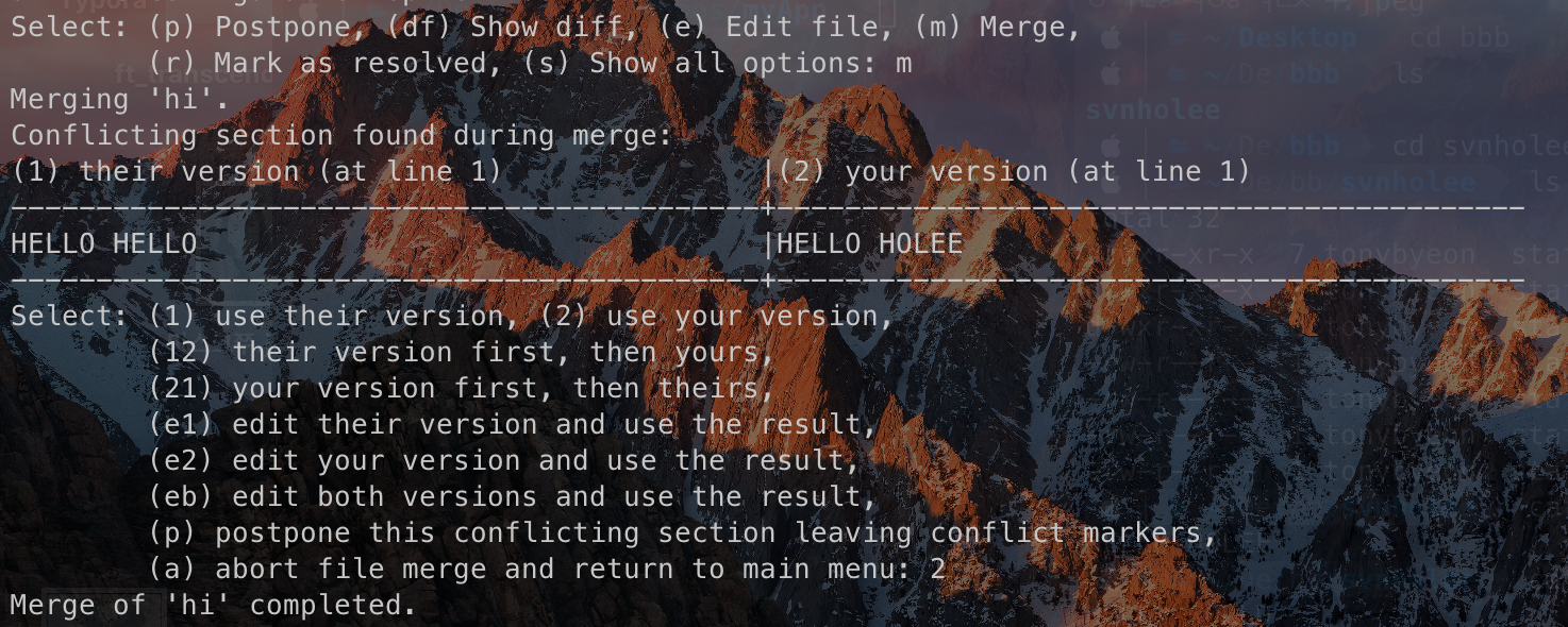 m으로 merge를 해보자. 나의 hi 파일로 반영해보자.