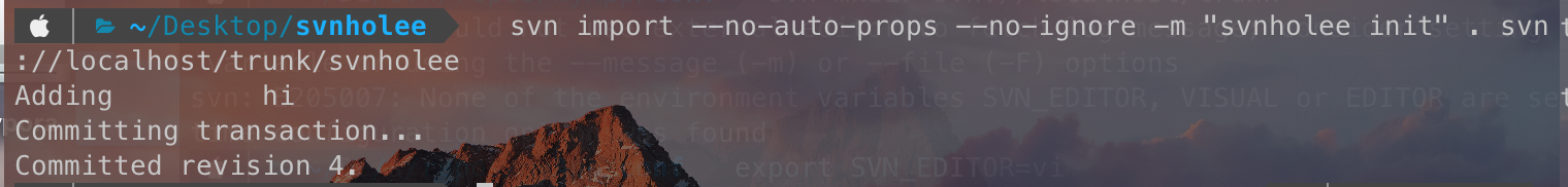 폴더를 svn 서버에 생성을 하려고 아래 명령어를 입력했는데 에러가 발생했다. svn mkdir svn://localhost/trunk svn: E205007: Could not use external editor to fetch log message; consider setting the $SVN_..