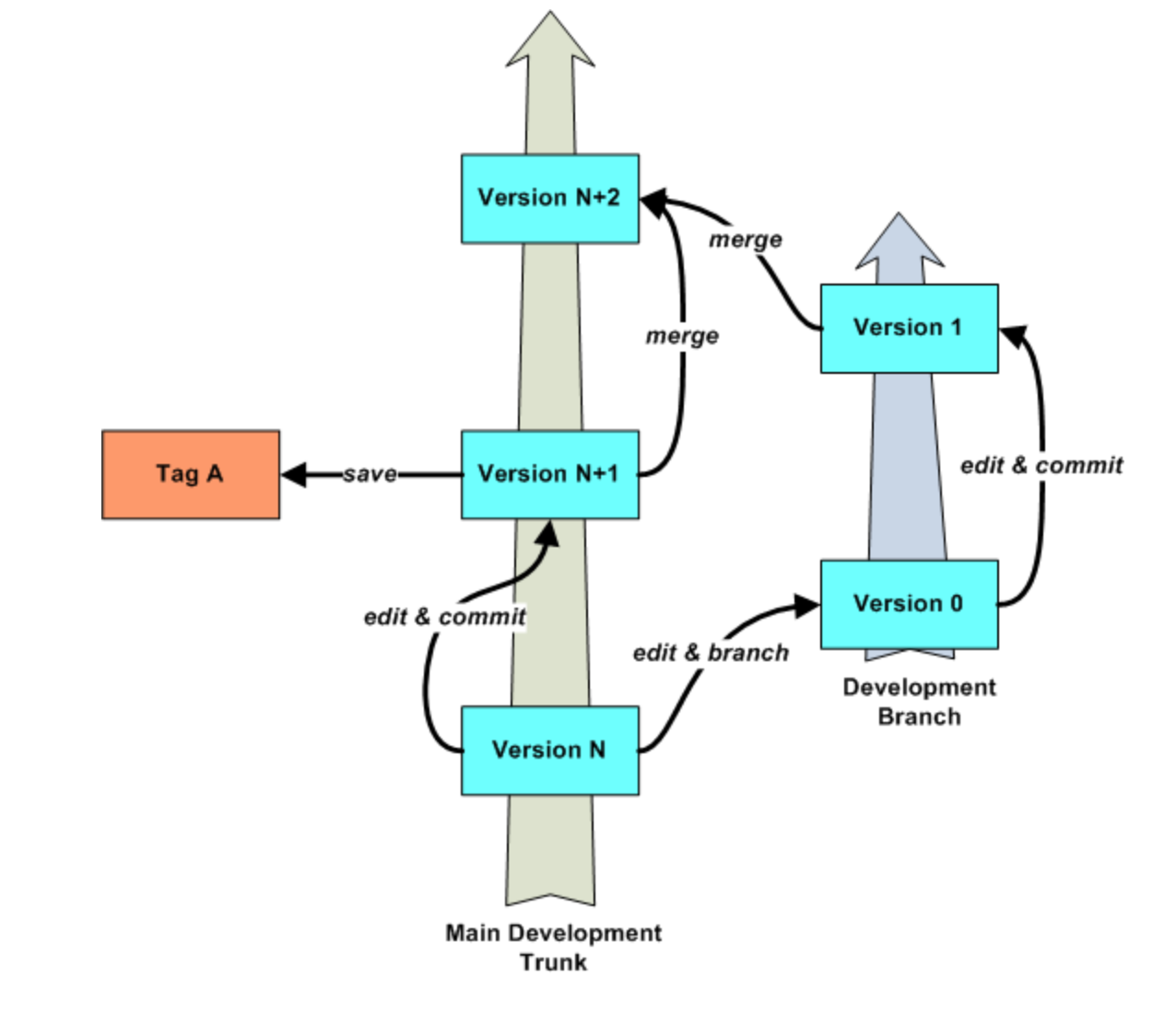 단순히 폴더를 나눠서 flow 관리하는 개념이다. 이후, svn 개념이 발전해서 git이 나온 만큼 git과 많은 부분이 닮아 있다.