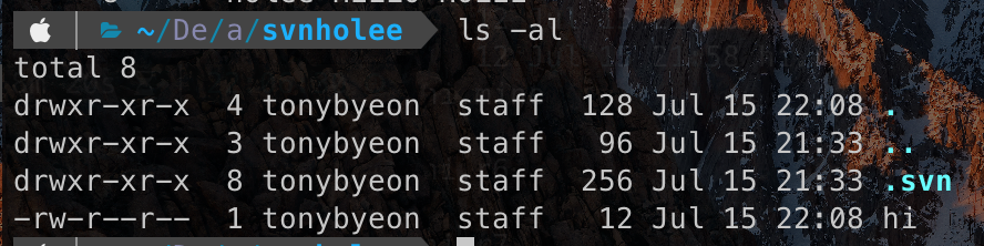 마지막으로 svn으로 관리되는 디렉토리에는 .svn 폴더가 생성돼서 해당 디렉토리를 관리한다.