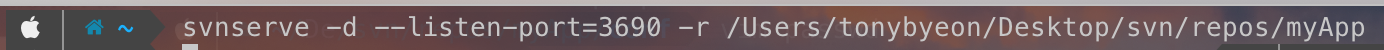 아래 명령어를 통해서 svn 서버를 실행할 수 있다.