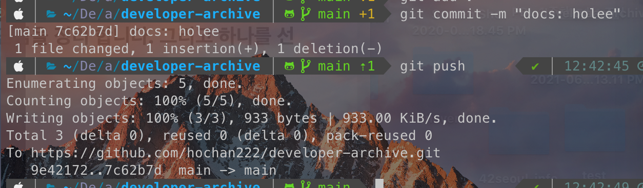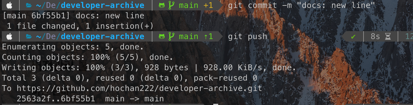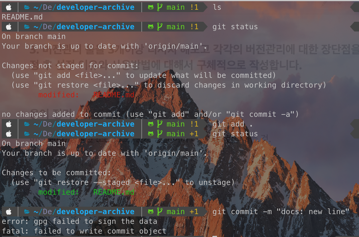 gpg 에러가 났는데 보통의 경우에는 commit이 잘 됐을 것이다. (gpg는 따로 설정이 필요하다.) 해당 내용은 아래 링크를 참고하자.