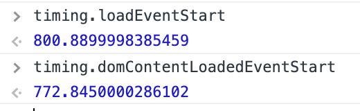 PerformanceNavigationTiming의 domContentLoadedEventStart과 loadEventStart를 사용해서 각각의 발생 시점을 알 수 있다.